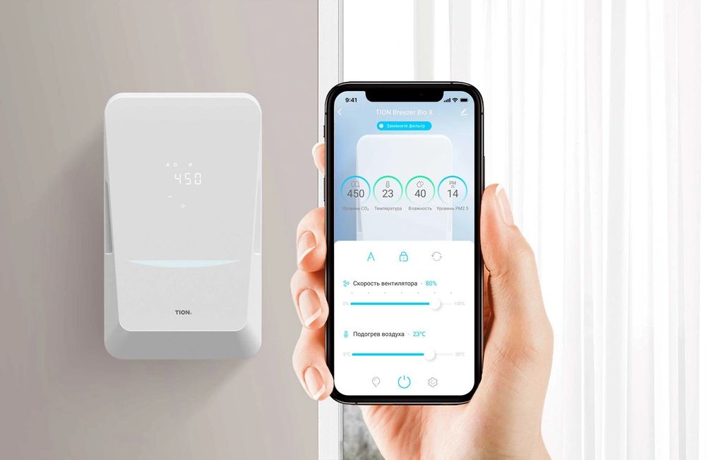 TION Бризер Bio X Standard – приточный очиститель воздуха компактных габаритов и очисткой входящего уличного воздуха для безопасного проветривания.